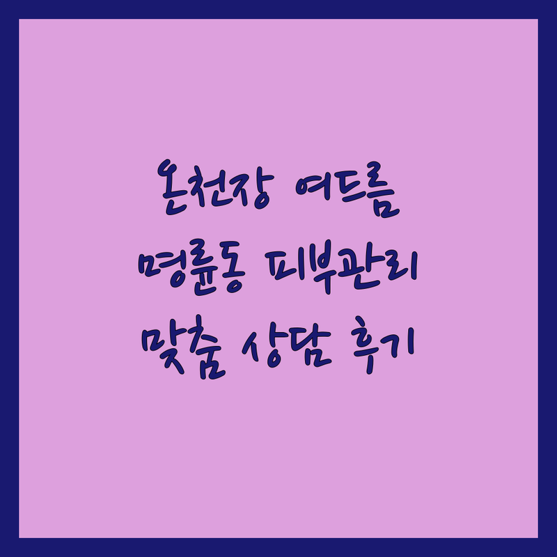 안녕하세요, 여드름으로 몇 년 동안 고생하며 피부과부터 에스테틱까지 수없이 문을 두드려본 평범한 사람입니다. 여드름 때문에 외출도 꺼려지고, 거울 볼 때마다 속상했던 그 마음 누구보다 잘 알아요. 특히 ‘광고성 후기’가 너무 많아서 진짜 효과 좋은 곳 찾기가 하늘의 별 따기였죠. 저처럼 돈과 시간을 낭비하지 않도록, 제가 직접 발품 팔아 알아보고 ‘이 정도면 믿고 가볼 만하다’ 싶었던 부산 동래구/온천장역/명륜역 근처 여드름 관리 전문점들을 환자(고객) 입장에서 솔직하게 정리해봤습니다. 전문가의 추천이 아닌, 오직 ‘경험자의 팁’을 공유합니다.
